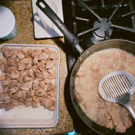 Dice up the meat in small cubes and marinade in a big bowl (marinate for a MINIMUM 2 hours - the longer the better)